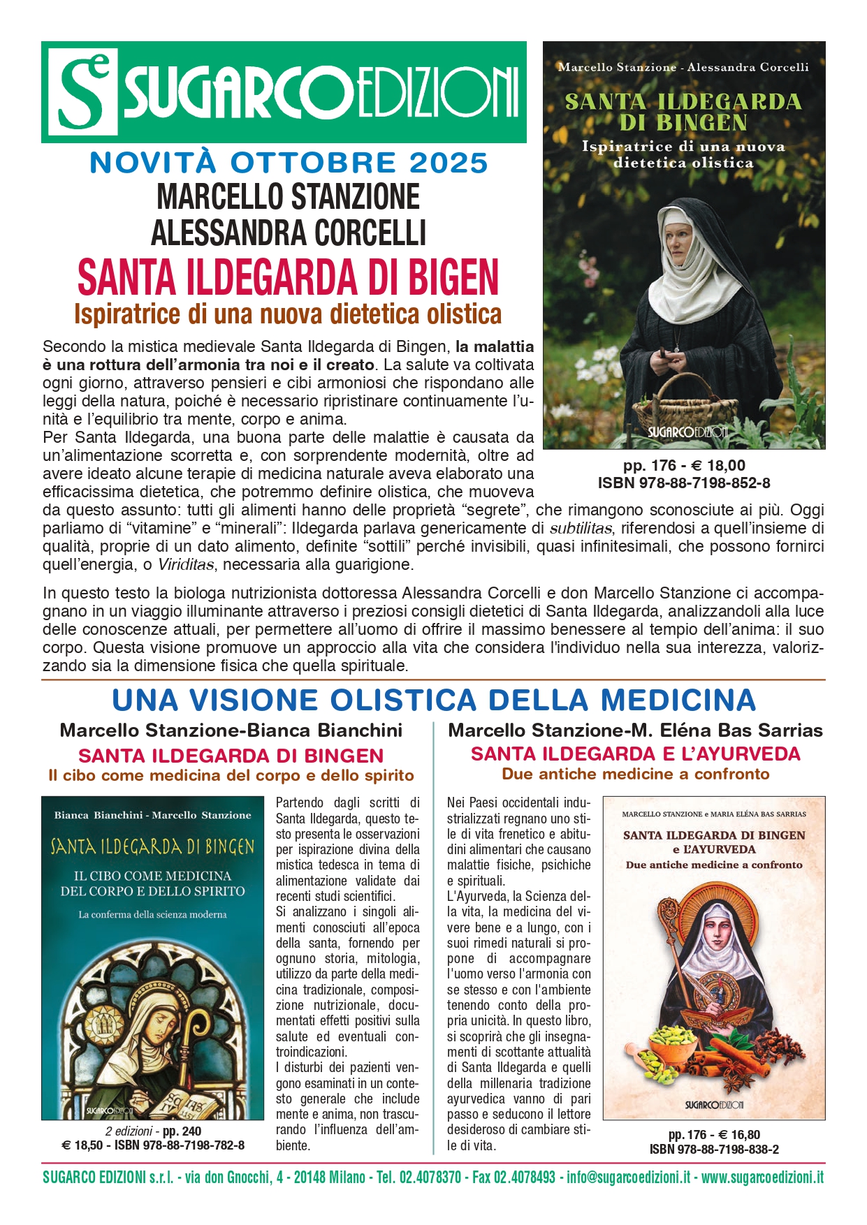 In questo testo la biologa nutrizionista dottoressa Alessandra Corcelli e il sacerdote cattolico don Marcello Stanzione ci accompagnano in un viaggio illuminante attraverso i preziosi consigli dietologici di santa Ildegarda di Bingen, a loro tanto cara, analizzandoli alla luce delle conoscenze attuali, per permettere all’uomo di ritrovare e onorare il suo dono sacro, ovvero portare un miglior benessere al tempio dell’anima, il nostro corpo. Questa visione promuove un approccio alla vita che considera l’individuo nella sua interezza, valorizzando sia la dimensione fisica che quella spirituale.